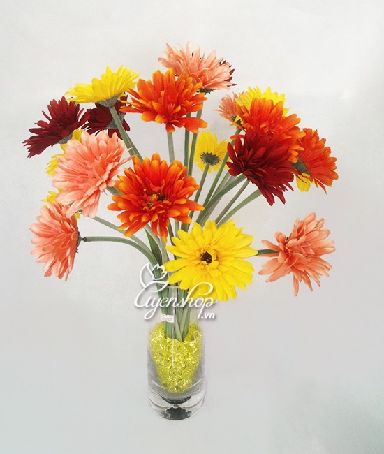 Bình hoa Đồng Tiền là một trong những lựa chọn hoàn hảo cho không gian sống của bạn, không chỉ mang lại vẻ đẹp rực rỡ mà còn mang ý nghĩa tài lộc, thịnh vượng. Với nhiều màu sắc tươi tắn, bình hoa này sẽ giúp gia chủ làm ăn tấn tới và phát đạt. Đặc biệt, khi kết hợp với bình thủy tinh đế dày, những viên đá long lanh sẽ tạo hiệu ứng ánh sáng lung linh, làm cho không gian của bạn thêm phần sinh động.