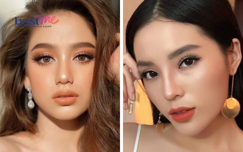 Đối với phần mắt và lông mày, hãy dùng các sản phẩm có màu sắc nhẹ nhàng, giữ cho tổng thể không quá rối mắt. Tạo khối và highlight với ánh vàng sẽ giúp gương mặt bạn thêm phần thanh thoát và cuốn hút. Đừng quên chọn son môi có ánh bóng nhẹ, như hồng, đỏ tươi hay cam, để thêm phần sinh động cho khuôn mặt.