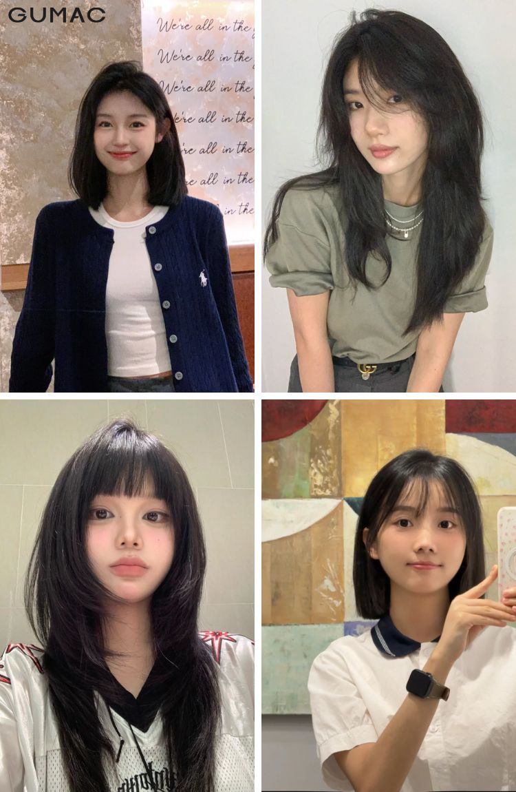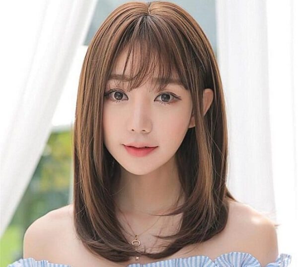 Bên cạnh đó, kiểu tóc layer dài với mái bằng cũng là lựa chọn không thể bỏ qua. Nó không chỉ giúp che khuyết điểm gương mặt mà còn tạo nên sự thanh thoát. Tóc layer dài duỗi thẳng không mái mang lại phong cách thanh lịch, tự nhiên nhưng vẫn rất trendy cho các bạn gái.