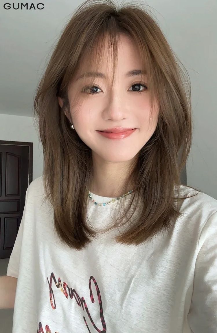 Nếu bạn ưa chuộng sự nhẹ nhàng, tóc layer ngắn với phần mái bay chính là một lựa chọn hoàn hảo. Kiểu tóc này giúp khuôn mặt trở nên sáng và rạng rỡ hơn. Đặc biệt, kiểu layer có độ dài trung bình, từ ngang vai đến giữa lưng, cũng rất phù hợp với lứa tuổi học sinh, giúp tôn lên nét dịu dàng và nữ tính.