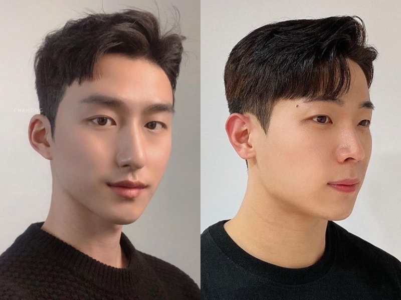 Nếu bạn sở hữu khuôn mặt vuông, hãy cân nhắc lựa chọn kiểu tóc này với phần tóc cắt sát hai bên và phần mái dài hơn. Điều này không chỉ giúp làm nổi bật những đường nét mạnh mẽ của khuôn mặt mà còn tạo ra sự hài hòa giữa các tỷ lệ. Kiểu tóc này rất linh hoạt, có thể chia ngôi theo tỷ lệ 6/4 hoặc 7/3 để tạo hiệu ứng đẹp mắt cho mỗi người.