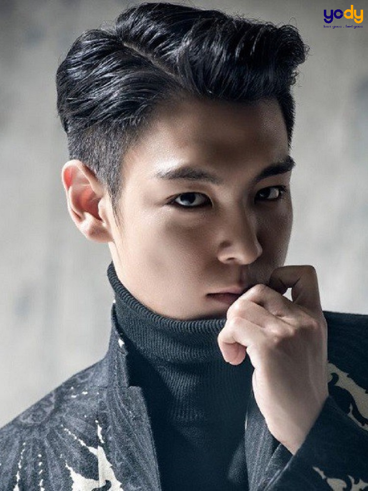 Phần tóc trên đỉnh được chia ngôi lệch, thường theo tỉ lệ 3/7 hoặc 2/8, tạo nên một kiểu dáng hiện đại và trẻ trung. Tóc được vuốt lên phía trước và ngược lại giúp khuôn mặt trở nên sắc nét hơn. Hai bên mai được cắt fade mờ dần, giúp kiểu tóc có chiều sâu và không gây cảm giác nặng nề.