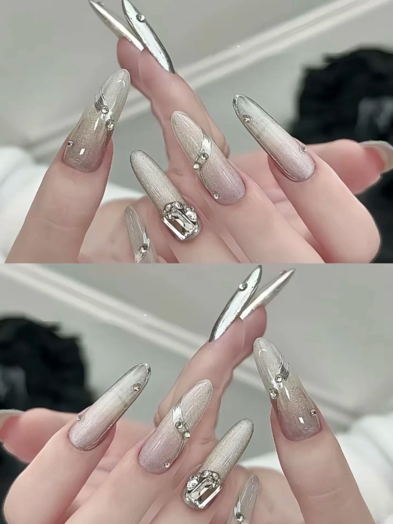 Các mẫu nail như tráng gương ngọc trai hay mắt mèo đính đá không chỉ mang lại nét quyến rũ mà còn cực kỳ thời thượng. Kiểu nail này rất lý tưởng cho nhiều dịp khác nhau, từ buổi tiệc sang trọng đến nơi công sở. Không chỉ đơn thuần là làm đẹp, mỗi bộ móng còn thể hiện gu thẩm mỹ tinh tế của người sở hữu.