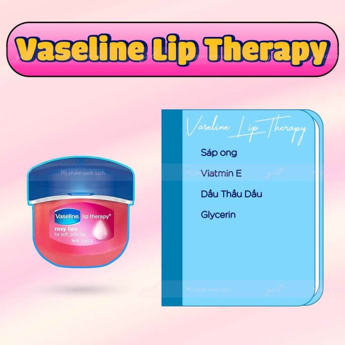 Vaseline Lip là một sản phẩm khác đáng chú ý, với khả năng dưỡng ẩm sâu và bảo vệ môi khỏi tác động của môi trường. Một combo son thỏi và ủ môi sẽ là bộ đôi lý tưởng để nuôi dưỡng đôi môi từ bên trong lẫn bên ngoài. Đặc biệt, son Lagumi chiết xuất từ hạnh nhân không chỉ an toàn mà còn giúp lên màu chuẩn và dưỡng môi mềm mại.