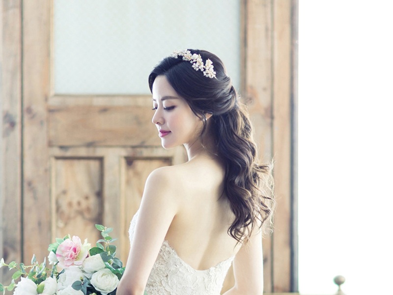 Ngoài ra, tóc buộc nửa đầu cũng là một lựa chọn đáng cân nhắc, đặc biệt cho những cô dâu có khuôn mặt tròn. Kiểu tóc này tạo cảm giác cao ráo và thu hút hơn. Ngày cưới là lúc để cô dâu thể hiện phong cách và bản thân, vì vậy hãy chọn cho mình kiểu tóc xõa hoàn hảo nhất nhé!