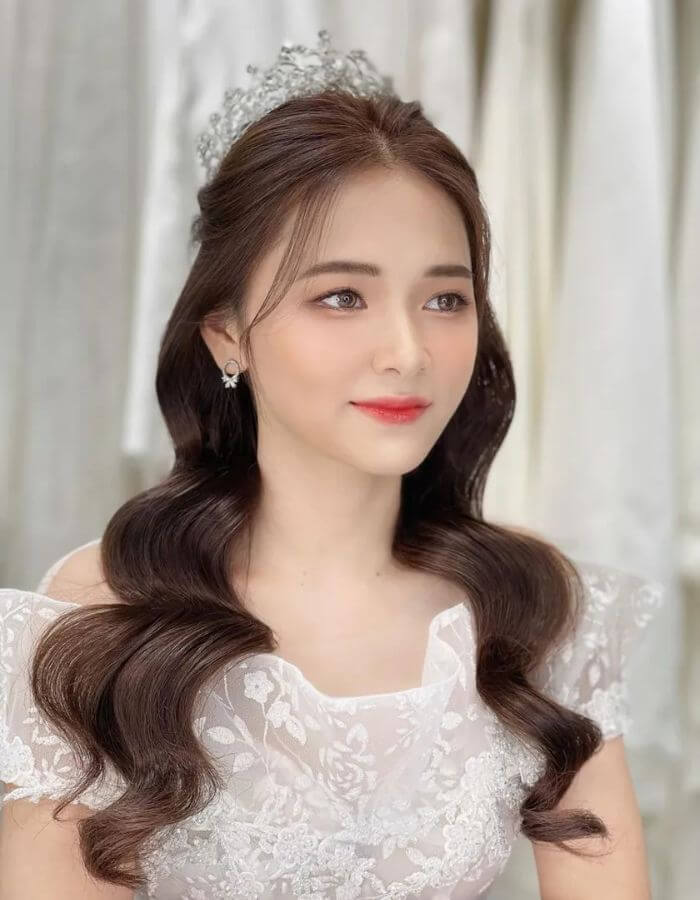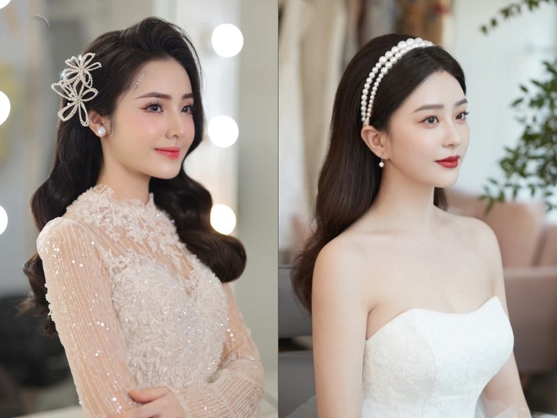 Bên cạnh đó, việc lựa chọn kiểu tóc phù hợp sẽ giúp cô dâu thêm phần lộng lẫy. Những kiểu tóc như búi cao hay búi thấp cũng rất được ưa chuộng, nhưng tóc xõa vẫn luôn giữ vị trí đặc biệt trong lòng những cô dâu yêu thích sự dịu dàng và tự nhiên.