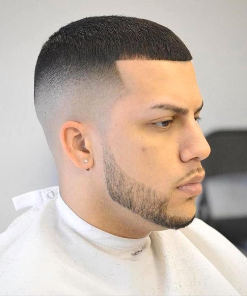 Kiểu tóc quân đội nam tính làm nổi bật các đường nét trên khuôn mặt